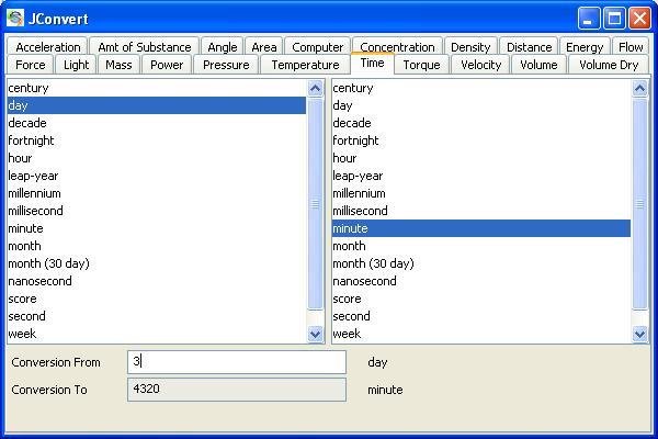 JConvert is a free unit conversion program that has a friendly user interface and can also be used with external applications. Conversions can be modified and/or added easily. Supports multiple languages. Downloads and runs in seconds! Try it now.