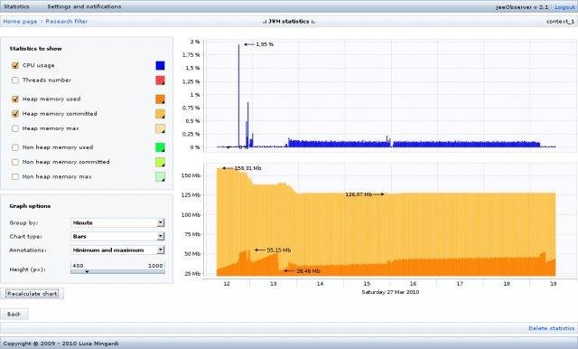 JeeObserver is an open source java monitoring tool used to analyze java applications and servers performance. It can monitor servlets, JSF actions, EJB beans, JVM cpu and memory usage and HTTP sessions. Full documentation at www.jeeobserver.com