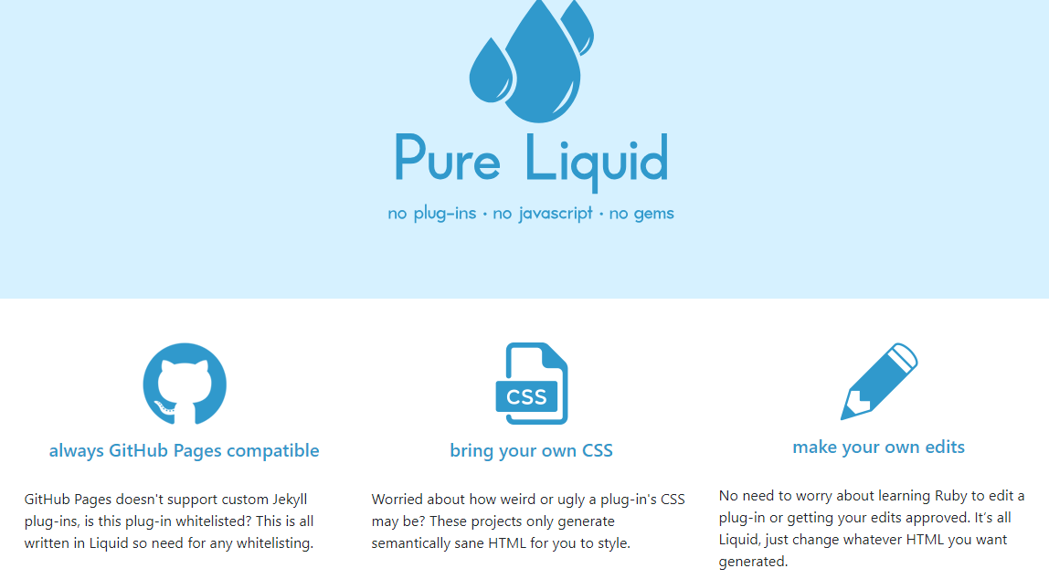 GitHub Pages can't run custom Jekyll plug-ins so when generating anchors for your headings (i.e. h1 - h6), you're stuck with JavaScript solutions that will inject anchors. But what if your users don't have JavaScript enabled on their browsers? If you're building a static website, why not make your anchors static as well? GitHub Pages doesn't support custom Jekyll plug-ins, is this plug-in whitelisted? This is all written in Liquid so need for any whitelisting. Worried about how weird or ugly a plug-in's CSS may be? These projects only generate semantically sane HTML for you to style. No need to worry about learning Ruby to edit a plug-in or getting your edits approved. It’s all Liquid, just change whatever HTML you want generated.