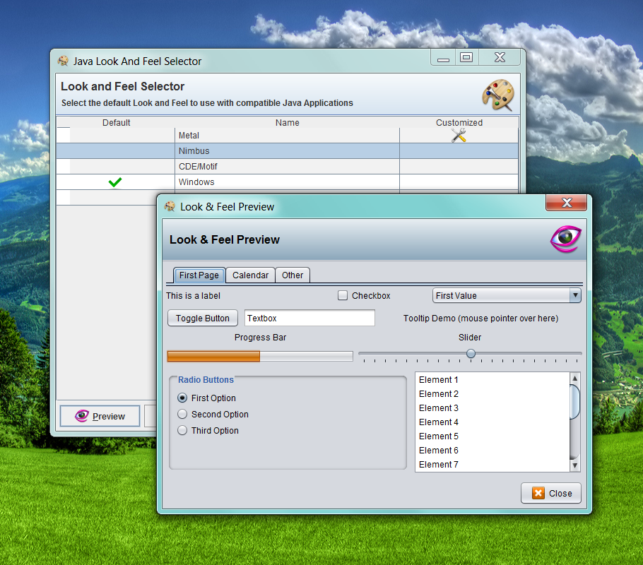 This tool allows users to centralize the default Swing Look and Feel selection for those Java applications that implement the specification. In order to use this service, programmers only have to reference a JAR library and call a static method.