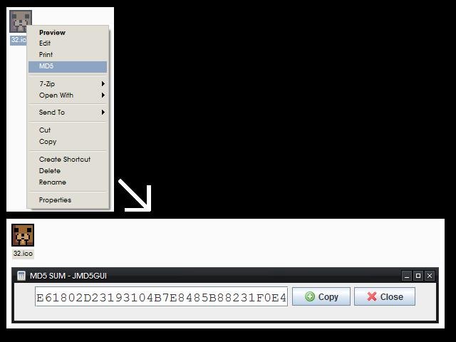 Small Java GUI utility to quickly get a file's MD5 sum. Intended for shell integration. Instructions included for adding to Windows XP context-menu.