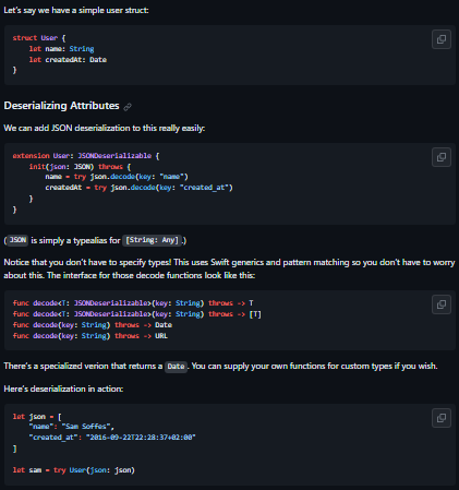 Micro framework for easily parsing JSON in Swift with rich error messages in less than 100 lines of code.