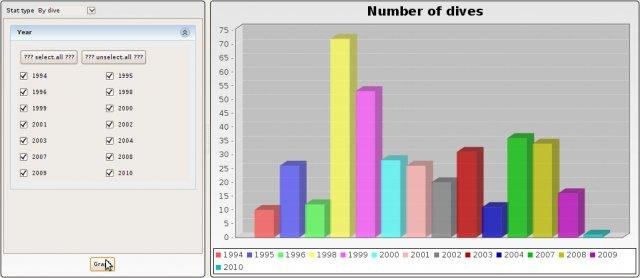 Java based Dive LogBook. Interface with UWATEC Aladin (serial connection). Records general dive data, dive profile (only with dive computer interface), generates a report and produces some statistics. Persistence : XML based.
