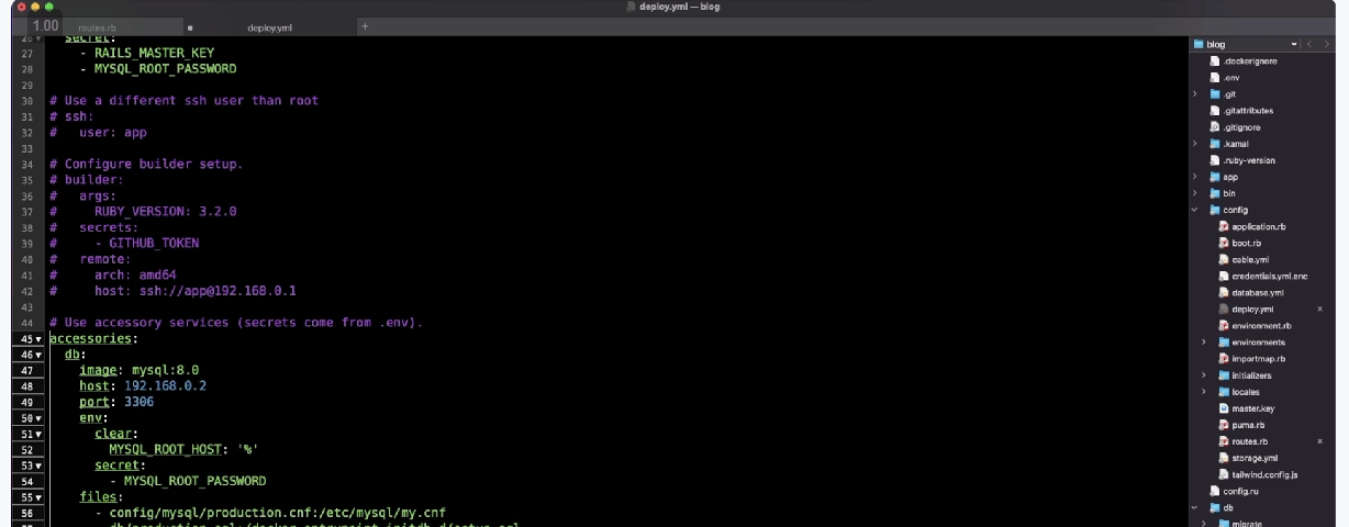 Kamal offers zero-downtime deploys, rolling restarts, asset bridging, remote builds, accessory service management, and everything else you need to deploy and manage your web app in production with Docker. Originally built for Rails apps, Kamal will work with any type of web app that can be containerized. Kamal seeks to bring the advance in ergonomics pioneered by these commercial offerings to deploying web apps anywhere. Whether that’s low-cost cloud options without the managed-service markup from the likes of Digital Ocean, Hetzner, OVH, etc, or it’s your own colocated bare metal. To Kamal, it’s all the same. Feed the config file a list of IP addresses with vanilla Ubuntu servers that have seen no prep beyond an added SSH key, and you’ll be running in literally minutes.