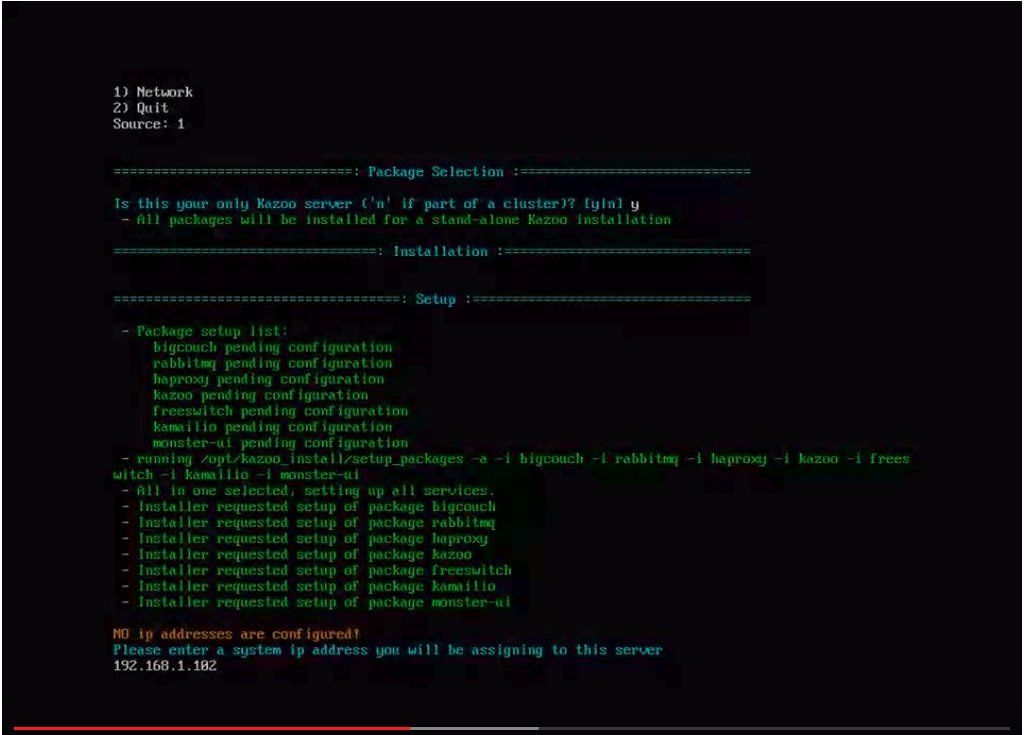 - Execute 'install_kazoo' from bash shell. There are some config steps (hostname, IP Address.