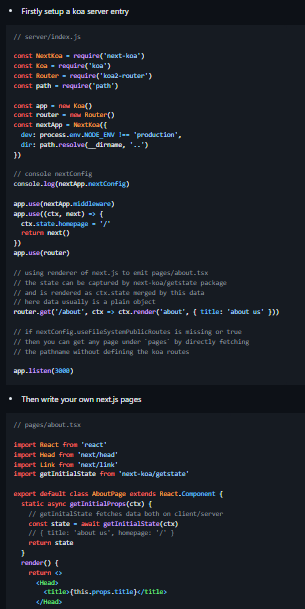 Koa2 & Next.js hydration packages. Firstly set up a koa server entry, then write your own next.js pages.