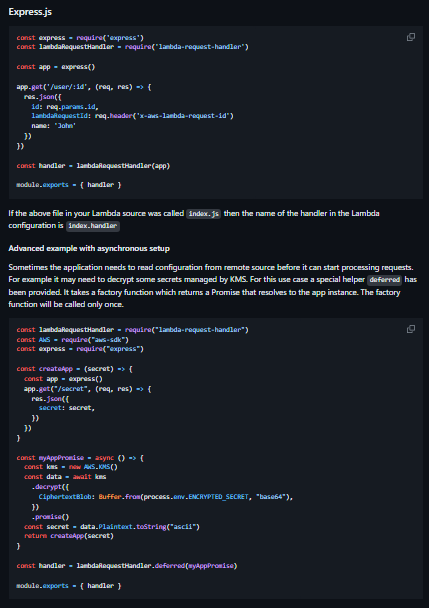 Package your Node.js web app as a Lambda function executed by an API Gateway or ALB event. An npm module that allows your Node.js web applications to be deployed as an AWS Lambda function and invoked in response to API Gateway, HTTP API, or Application Load Balancer requests.