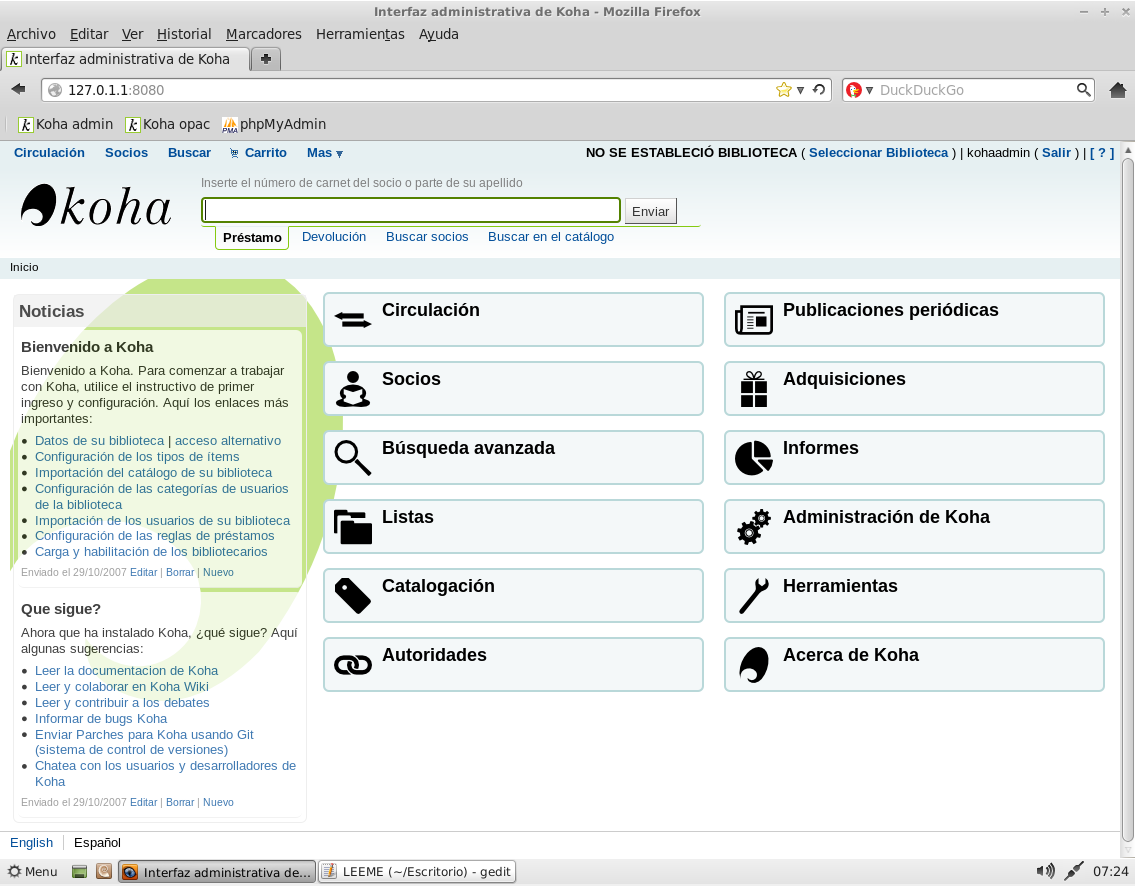 Este aporte pretende acercar una ayuda, ofreciendo en un live DVD (con posibilidad de instalación) un sistema operativo GNU/Linux como Linux Mint 13 XFCE listo para usar con un Koha 3.8.4 ya instalado en español con algunos detalles valiosos como hojas de carga traducidas, una hoja de catalogación simple configurada en una sola pestaña y tambien los diferentes tipos de materiales ya traducidos.