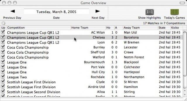 LiveScores is a Mac OS X application which displays live updates of football (soccer) matches. Its components include a window which lists today's games and a custom transparent floating window for updates. It is a Cocoa app written in Objective-C.