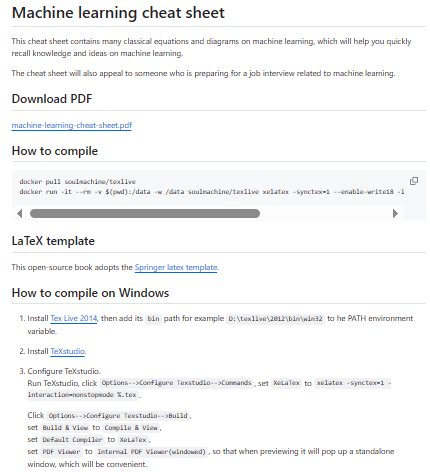 This repository is a visually rich and well-organized “cheat sheet” summarizing core machine learning concepts, algorithms, formulas, and best practices. It includes summaries of supervised and unsupervised learning methods, model evaluation metrics (accuracy, precision, recall, ROC/AUC), overfitting/underfitting, regularization (L1/L2), cross-validation, feature engineering techniques, and perhaps tips for hyperparameter tuning. Each section is presented concisely, often with diagrams, formula snippets, and short explanatory notes to serve as quick reference for students, practitioners, or interview prep. The repository is ideal for those who want a compact, at-a-glance reminder of ML fundamentals without diving back into textbooks. Because the cheat sheet is meant to be portable and broadly useful, it is format-friendly (often in Markdown, PDF, or image formats) and easy to include in learning workflow or slides.