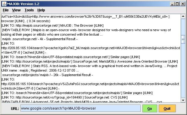 A largely text-based web-browser with a graphical front-end written in Java/Swing. It is a careful mix between a text-editor and a web-browser. MAJOB comes with on-board file-downloading widget and image viewer for dealing with images.