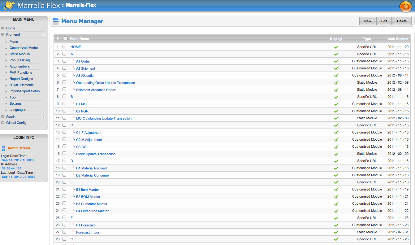 Login -> Menu -> Filter Screen -> Listing Screen -> Add/Edit/Delete Screen.