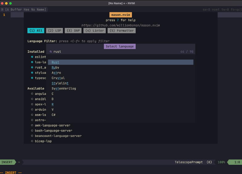 - Easily install and manage LSP servers, DAP servers, linters, and formatters