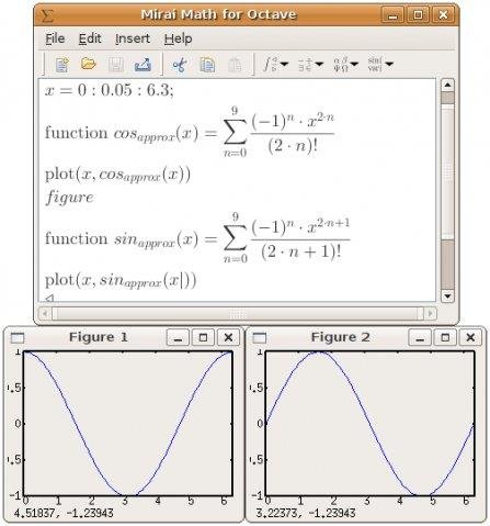 Graphical front-end for GNU Octave. Edit formulas in mathematical notation. Uses Octave (Matlab clone) as a math engine.