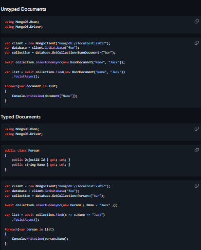 The official MongoDB driver for .NET applications, providing a native C# interface for working with MongoDB databases.