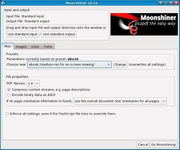 A graphical frontend (GUI) for ps2pdf. Use Ghostscript's power in converting PostScript to PDF without worrying about the complicated command line. Change image resampling options, encryption and prepress settings and more with a few mouse clicks.