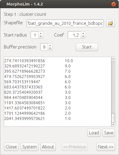 MorphoLim is dedicated to the identification of the morphological boundary of urban agglomerations. The method used avoids the need for any pre-defined maximum distance threshold between buildings. It is based on the conceptual and methodological tools of fractal geometry.