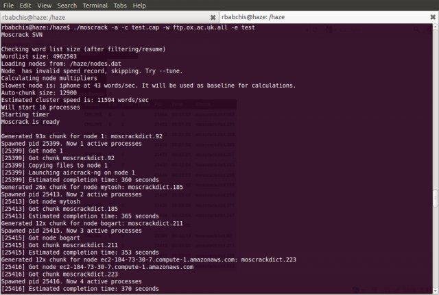 Moscrack is a perl application designed to facilitate cracking WPA keys on a cluster of computers. This is accomplished with any one of Mosix clustering software, ssh, rsh or Pyrit connectivity to nodes. Cluster nodes can run any Un*x variant (includ