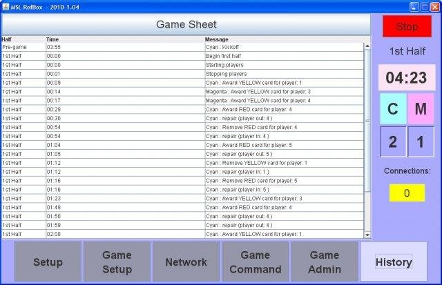 The RoboCup MSL Refbox is used for helping the referee to control a robotic soccer game (used by RoboCup Midsize league).