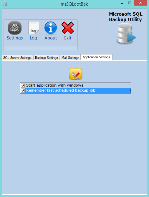 msSQLdotBak is a windows application that helps you manage your Microsoft SQL Server backup files, such as creating scheduled backup jobs and report you with e-Mail.