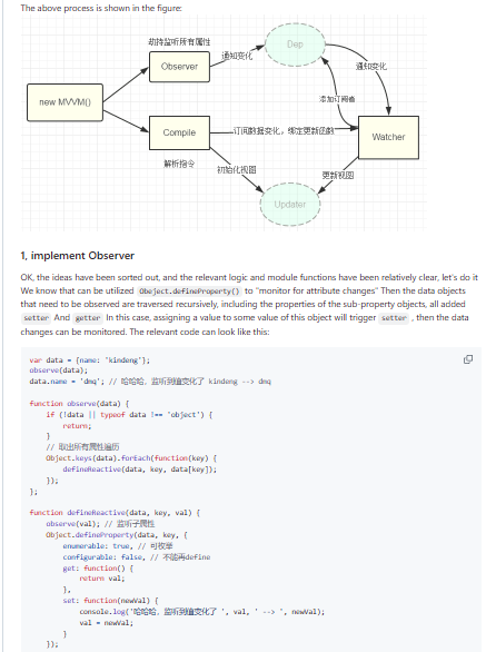 This repository presents a minimal JavaScript implementation of the MVVM pattern to illustrate how reactive data binding systems work under the hood. It wires up data observation with watchers and a dependency-tracking mechanism, then connects that to a simple template compiler and directive system to update the DOM when state changes. Two-way bindings and computed values demonstrate how views can reflect model changes instantly while user input propagates back to the data layer. The code favors clarity over performance, exposing concepts such as property interception, change notification, and view updates in a few readable modules. Because it mirrors ideas found in larger frameworks, it’s an excellent teaching aid for developers who want to understand why features like computed properties and watchers behave as they do. It is not intended as a production framework; instead, it’s a compact lab for learning the principles behind MVVM and modern reactive libraries.