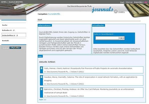 MyCoRe is an Open Source project for the development of Repositories, Digital Library and archive solutions. The technical base of the system is formed of Java class libraries, XML technology and different database backends.