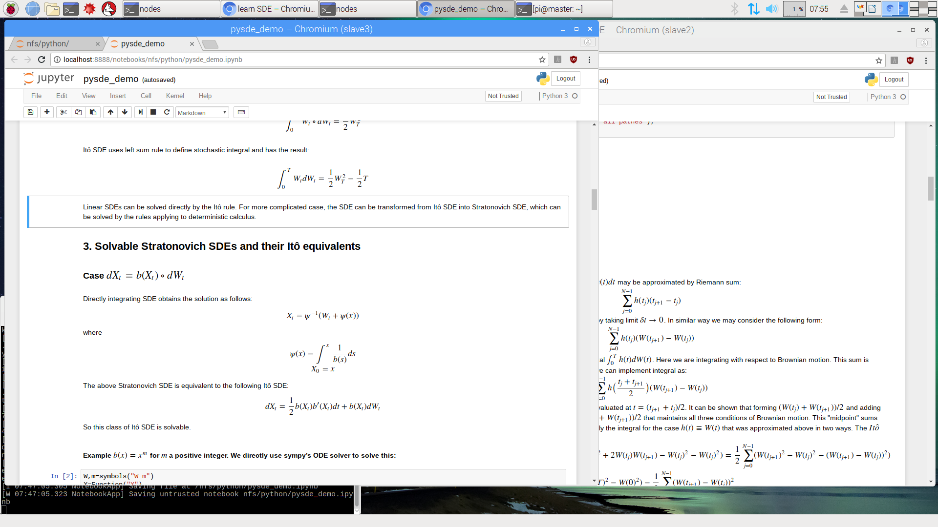 In this project I would like to show how to use a small cluster of raspberry pi that solves this problem. First search the less load average node, then launch the application on it, then using X11 forwarding display the application on master node screen.