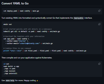 - Get your application directly into Go instead of YAML and use it in controllers, operators, CRs/CRDs easily