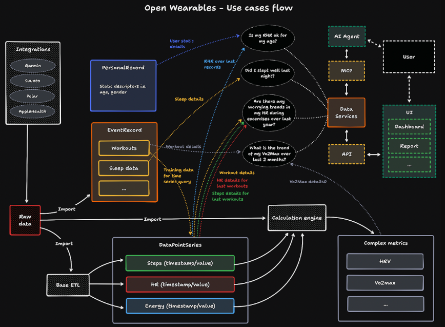 Open Wearables is an open-source initiative that aims to provide a community-driven ecosystem for wearable device software and interoperability by connecting sensor data, activity tracking, and health insights across multiple platforms and devices. Instead of relying on closed vendor ecosystems, the project provides standardized data models and APIs that let developers and hobbyists collect, sync, and analyze biometric and environmental data from wearables, DIY sensors, and open hardware projects. This approach allows users to break free from manufacturer lock-in while enabling richer, customizable dashboards, real-time visualizations, and personalized health analytics that match real-world needs rather than a one-size-fits-all model. It provides building blocks for federated data storage, modular device drivers, and plugin frameworks so contributions from different communities can extend capabilities without rewriting core logic.