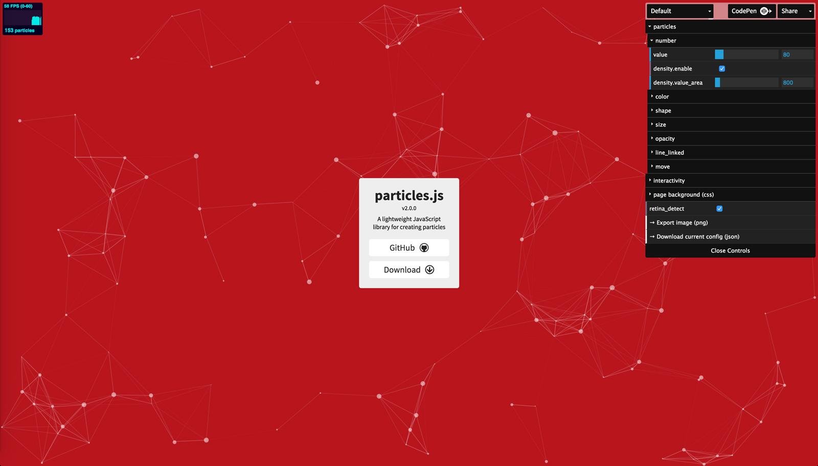 particles.js is a very lightweight JavaScript library that can be used to create particles, in a simulated environment where particles float and move across the screen. Build a JavaScript library and customize your particles in an easy to use and easy to build simulation.