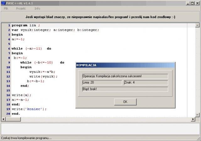 'PASC++AL' will be an education application. It will be simulation of compiler and virtual machine for PASCAL language write in C++. This project will be realized under Uniwersity of Podlasie (POLAND).