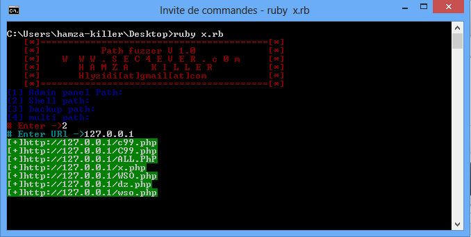 # Path fuzzer V 1.0 simple project for scan directory and backup and shell and mulsi dir Project Samples Project Activity See All Activity > Follow Path fuzzer V 1.0 Path fuzzer V 1.0 Web Site Rate This ProjectLogin To Rate This Project User Reviews Be the first to post a review of Path fuzzer V 1.0 ! Additional Project Details Registered 2014-05-25 Report inappropriate content