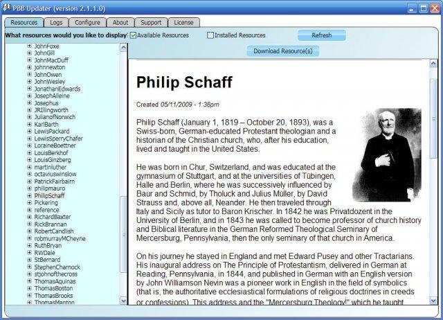 StillTruth.com has graciously hosted many PBB (public domain) books for the Logos system (http://www.logos.com/). The PBB Updater is an application to provide an easy solution for downloading and installing these books.