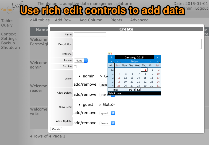 PermeAgility is a lightweight integrated data manager and web application framework. It uses the OrientDB NoSQL database engine and provide a rich dynamic UI, styles, and security all tightly integrated into one flexible, and extendable framework.