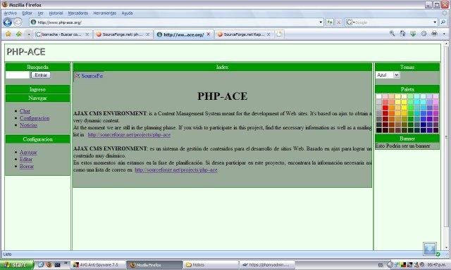 Ajax CMS Environment: is a Content Management System meant for the development of Web sites. It's based on ajax to obtain a very dynamic content. A PHP-ACE characteristic is that it allows a visitor to modify the form in which the site in its navigator