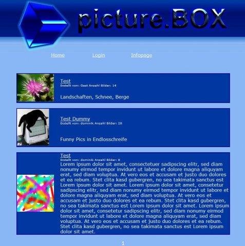 In the context of a project at school, we have developed an online gallery. picture.BOX was born and we would like to distribute it for free. It is a "web2.0"-Gallery with a lot of features.