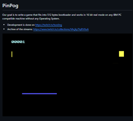 pinpog is a simple, open-source ping pong game implemented in C using SDL2. Created by Tsoding, it serves as both a nostalgic recreation of the classic arcade game and a fun educational project demonstrating game development fundamentals such as collision detection, input handling, and frame-based rendering. It’s small in scope but clear in design, making it ideal for those learning C or exploring real-time interactive programming through games.