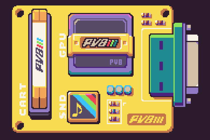Pixel Vision 8's core philosophy is to teach retro game development with streamlined workflows. PV8 is also a platform that standardizes 8-bit fantasy console limitations built on top of a fork of MonoGame, called MonoVision. This engine provides a standard set of APIs to create authentic-looking 8-bit games with modern programming languages and workflows. It also allows you to define specific limitations for the resolution, colors, number of sprites on screen, and more. There are several different ways to build and run Pixel Vision 8, depending on your choice of language, skill level, and goals. You can always get the latest compiled version on itch.io or check out the incremental builds on github. The platform is incredibly modular and built on a "chip" system that supports swapping out core functionality with new chips. This allows you to customize it to your own needs.