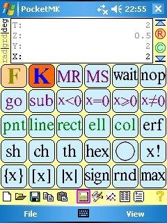 PocketMK is programmable RPN calculator designed to be comfortable for small screens (like PDA) and compatible with a set of Soviet programmable calculators (like MK-61). It have special functions (erf, gamma ...), graphical and indirect address commands