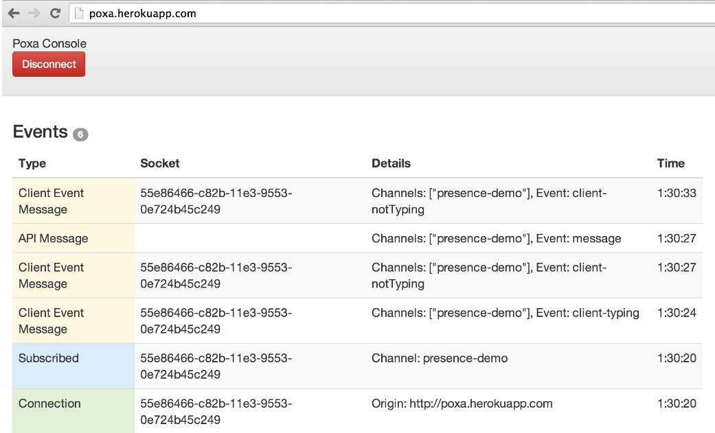 Pusher server implementation is compatible with Pusher client libraries. Open Pusher implementation compatible with Pusher libraries. It's designed to be used as a single registered app with id, secret, and key defined on start. Poxa is a standalone elixir server implementation of the Pusher protocol. Docker images are automatically built by Docker Hub. They are available at Docker Hub. One can generate it using: docker build -t local/poxa. Poxa uses gproc extensively to register websocket connections as channels. So, when a client subscribes for channel 'example-channel', the websocket connection (which is a elixir process) is "tagged" as {pusher, example-channel}. When a pusher event is triggered on the 'example-channel', every websocket matching the tag receives the event.