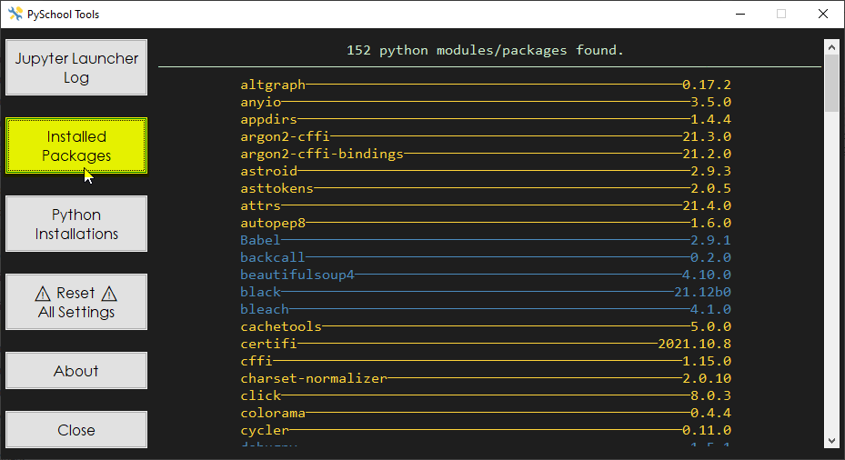 - Possibility to install multiple PySchool distributions (different Python version: 3.8, 3.9.../ architecture: 32bit, 64bit) on the same machine, without affecting other Python installations on your system.