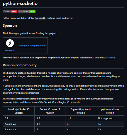 python-socketio is a robust Python library that implements the Socket.IO protocol, enabling real-time, bidirectional communication between web clients and servers. It works with multiple asynchronous frameworks such as asyncio, eventlet, and gevent, so developers can choose the concurrency model that best fits their application needs while still using a consistent API. The library provides both server and client implementations, allowing Python applications to serve and communicate with browser clients or other Socket.IO clients in real time. It supports key Socket.IO features like event handling, message broadcasting, binary data transmission, rooms, and namespaces, giving developers the building blocks to create chat applications, live dashboards, multiplayer games, and collaborative tools.