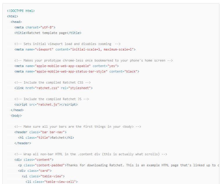 Ratchet is designed to respond to touch events from a mobile device. Enable touch event emulation in Chrome (found in the overrides tab in the web inspector preferences). Use a JavaScript library like fingerblast.js to emulate touch events (ideally only loaded from desktop devices). Ratchet is downloadable in two forms, within which you'll find directories and files, logically grouping common resources and providing both compiled and minified variations. The most basic form of Ratchet is the grouping of the precompiled files for quick drop-in usage in nearly any web project. We provide compiled CSS and JS (ratchet.*), as well as compiled and minified CSS and JS (ratchet.min.*). The Ratchicon fonts are included, as are the Android and iOS platform themes. The Ratchet source code download includes the precompiled CSS, JavaScript, and font assets. Provides design patterns that serve as basic building blocks.