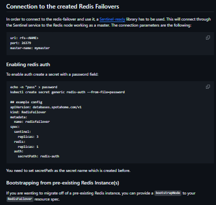 - Connection to the created Redis Failovers