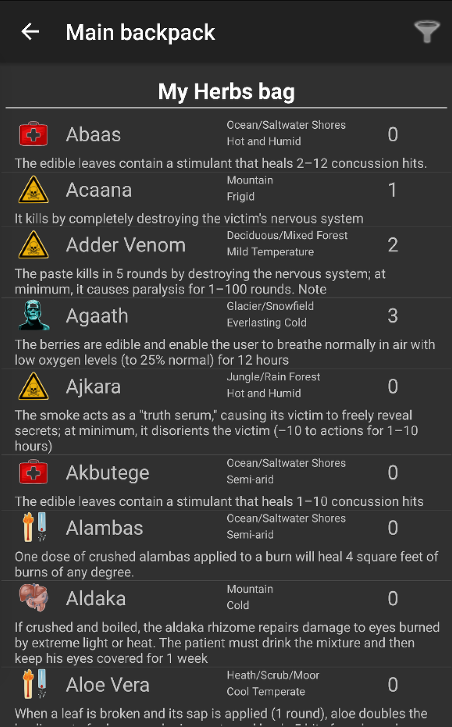 Allow to setup inventories for a set of Role Playing Game characters, lists all items and their properties, split and share your items for several environments.