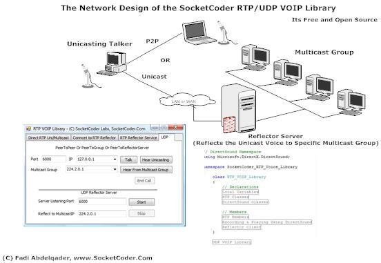 Is a Free Open Source RTP VOIP Library. Contants For R.0.2: 1- RTP/UDP Multicasting & Unicasting Voice Transmission 2- RTP/UDP Client/Server Using Reflector service Unicast-->(Talker to Reflector Server) and Multicast--> (Reflector Server to Clients)