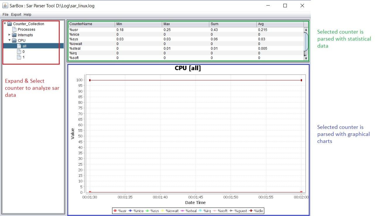 SarBox helps to analyze this log file and present data in graphical charts or text format.