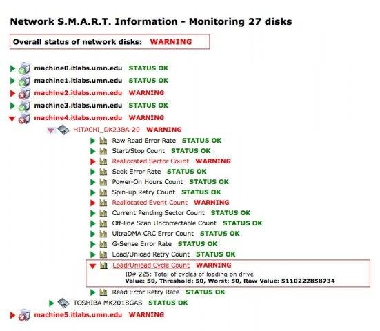 S.M.A.R.T. Network Monitor is a combination of an easily distributable version of smartmontools along with a client/server architecture and webGUI. It will allow system admins to centrally monitor S.M.A.R.T. characteristics of all disks on their network