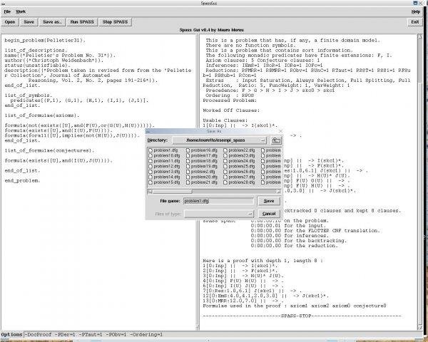 Spassgui is a Perl/Tk based Gui for SPASS (An Automated Theorem Prover for First-Order Logic with Equality) by http://spass.mpi-sb.mpg.de .