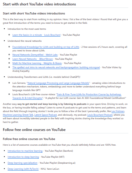 Start Machine Learning in 2026 repository is an open educational guide designed to help beginners enter the field of machine learning and artificial intelligence with little or no prior technical background. The project organizes a large collection of learning resources, including online courses, books, tutorials, research articles, and video lectures that explain fundamental AI concepts. Its structure functions as a learning roadmap that gradually introduces essential topics such as programming, mathematics, statistics, neural networks, and modern deep learning techniques. The repository emphasizes flexibility by allowing learners to choose their own path through the material depending on their interests, preferred learning style, and level of prior knowledge. Many of the resources referenced are free or widely accessible, making the guide practical for self-learners who want to study independently without formal coursework.